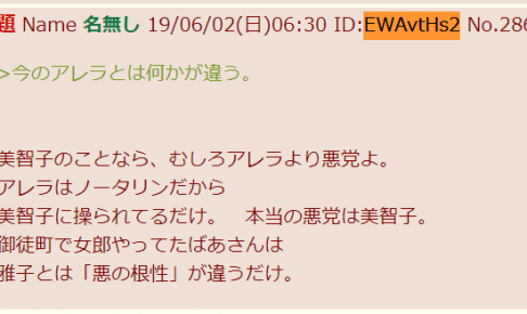 皇室全般画像掲示板妖怪あかさたな婆 6月3日のID:HCeZj9jE 07:57「妖怪あかさたな婆降臨!」 07:51「アンタに任せる」 07:53「また開き女子高生偽佳子」 07:…