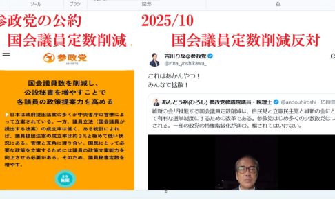 賛成:国民民主党 皆様のお声 ・議員定数削減は、“さっさと賛成して次へ進む”ような話じゃない。削られるのは議席じゃなく、地方や少数の声だ。それでも減らすというなら、拙速ではなく慎重な議論を。民主主義の根幹を…