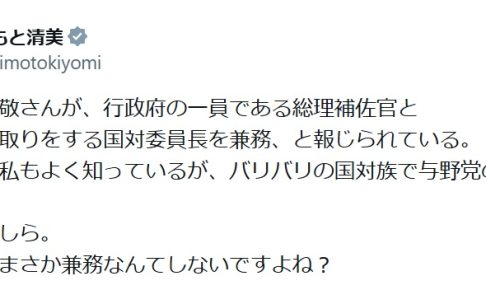 2025年 辻本議員「維新・遠藤敬氏の『総理補佐官』『国対委員長』兼任は不可能」