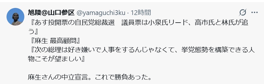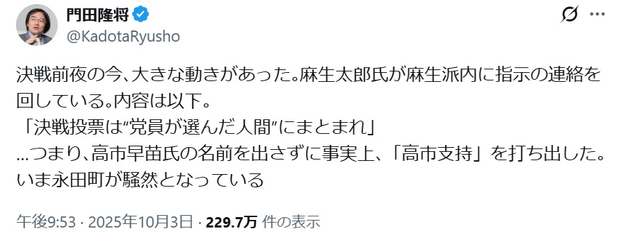 「麻生太郎が高市に乗る」説