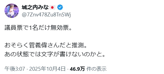 統一教会のコバホークはサナエに投票、無事ミッション完了で大喜び