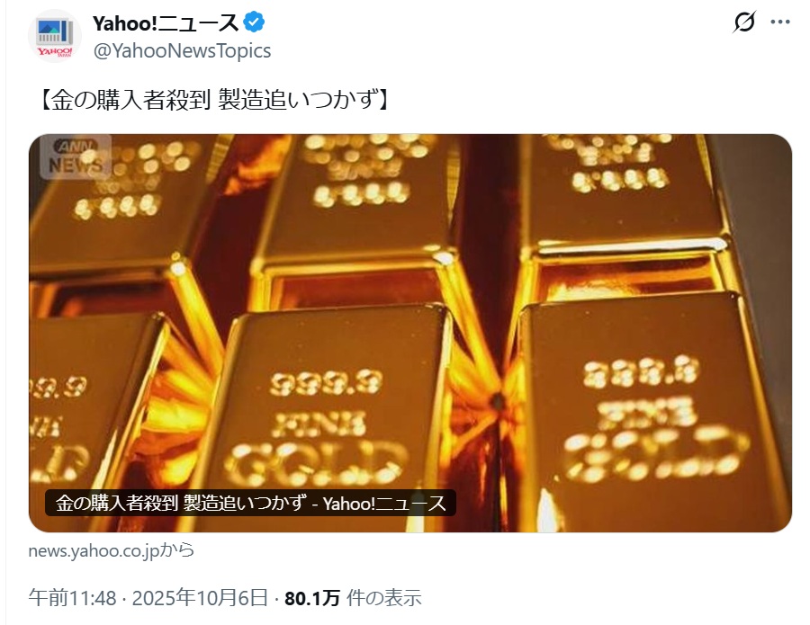 日本人は通貨が崩壊する中、ドルを買うよりも速いペースで金を購入しています。
