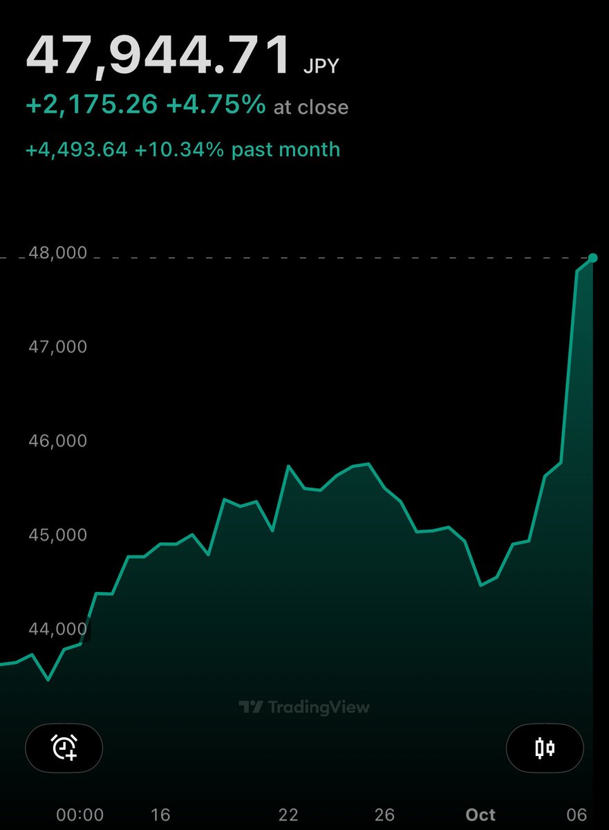 円相場急落、一時1ドル149円台 高市自民新総裁で海外勢が円売り