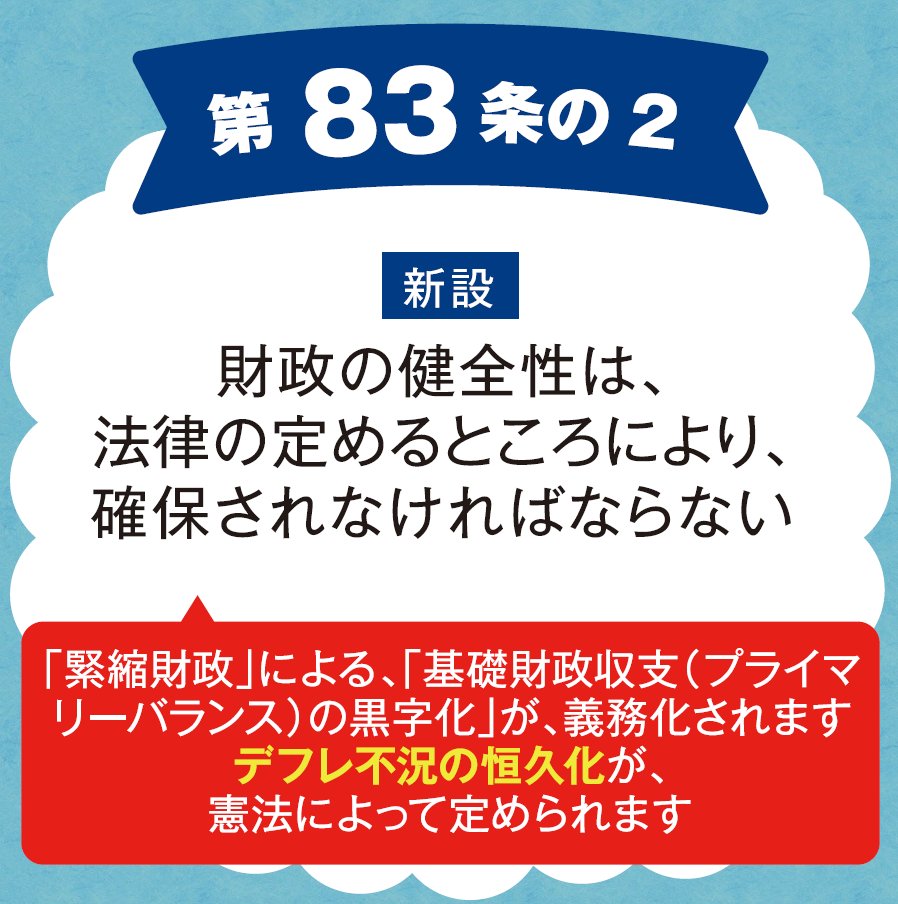 自民党改憲草案の第83条では緊縮財政が憲法に盛り込まれます