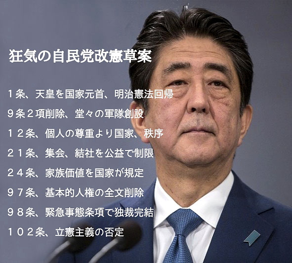 銃撃事件が無かったら,この改憲草案が賛成多数で国会を通過していたかと思うと鳥肌が立つ。憲法改悪は最終的に國民投票で阻止せねばならないが,間違っても国会がカルト草案を通すことは無いと信じる!これ以上カルト教団に弄ばれたら,日本はカルトの属国のままで,独立国としての体を為さなくなる。