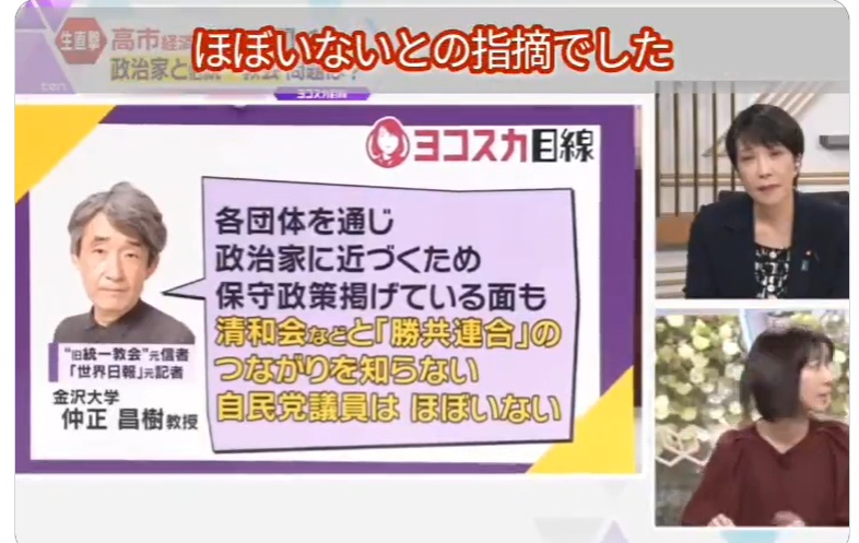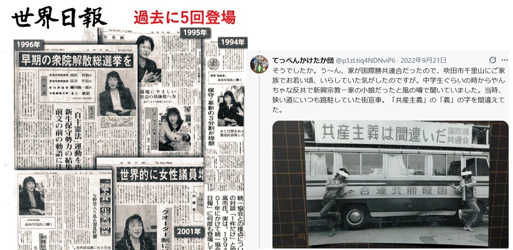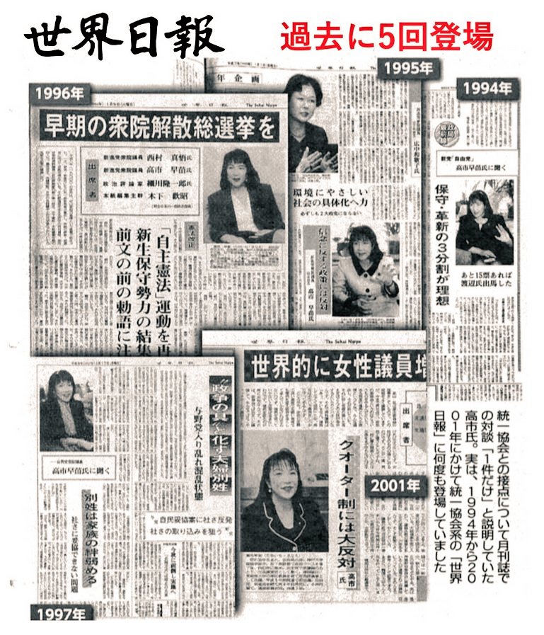 高市「#統一教会 イコール #世界平和家庭連合 ですか…とかイコール #勝共連合 であるとは、様々報道されるまで分からなかった」