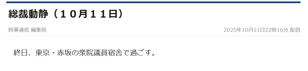 連休1日目 10/11 動かない自民総裁、根回しに動く野党