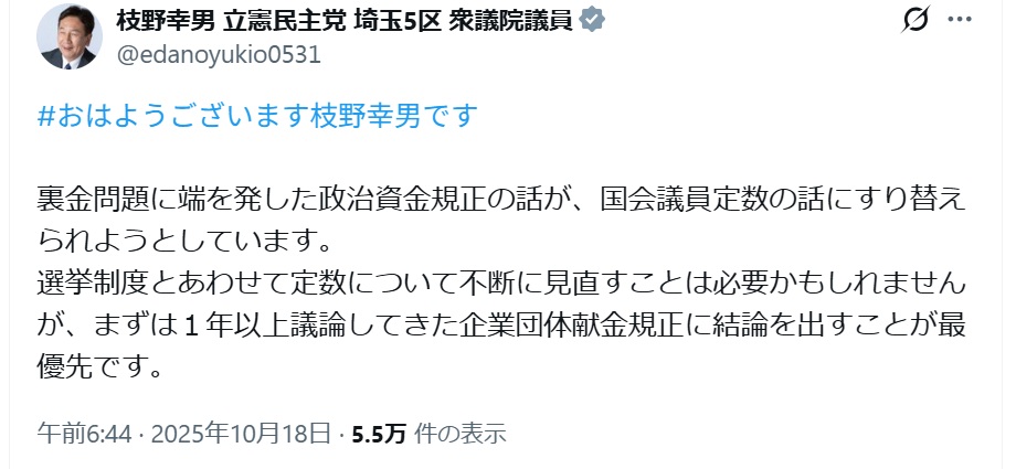いつの間にか、「政治資金規正=不正を封じる法案」から、「国会議員定数削減=少数党の独裁制」へすり替えられていた