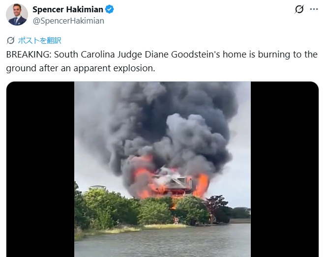 ・サウスカロライナ州の(トランプに批判的だった)ダイアン・グッドスタイン判事の自宅が、明らかな爆発後に全焼