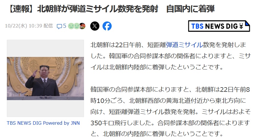 北朝鮮はサナエを援護するため、これからもミサイルを撃つでしょう。