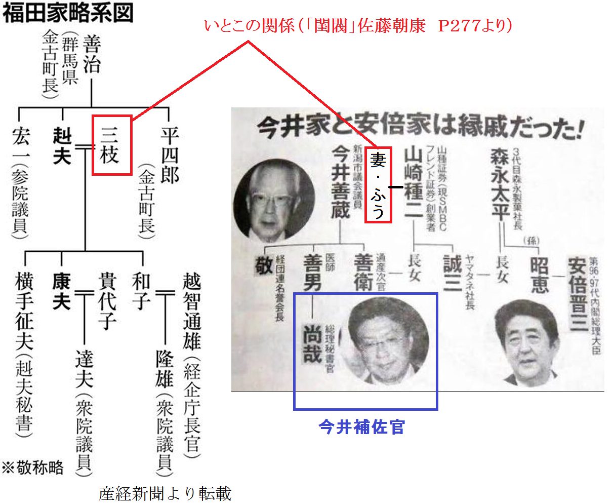 よほどのことが無い限り、平和時には、似た者同士の家で閨閥を作りますので、反日中国派の福田家、統一教会とズブズブの安倍家や加藤家とのつながりが深そうな今井さんは、有能かもしれないけど、日本のために働く人ではなさそうなんですよね。
