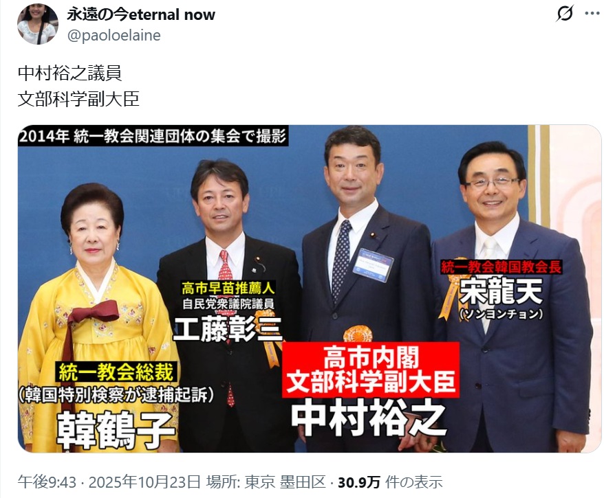 サナエが首相就任直後、北朝鮮は祝砲のミサイルをうち、韓国では統一教会がイベント。