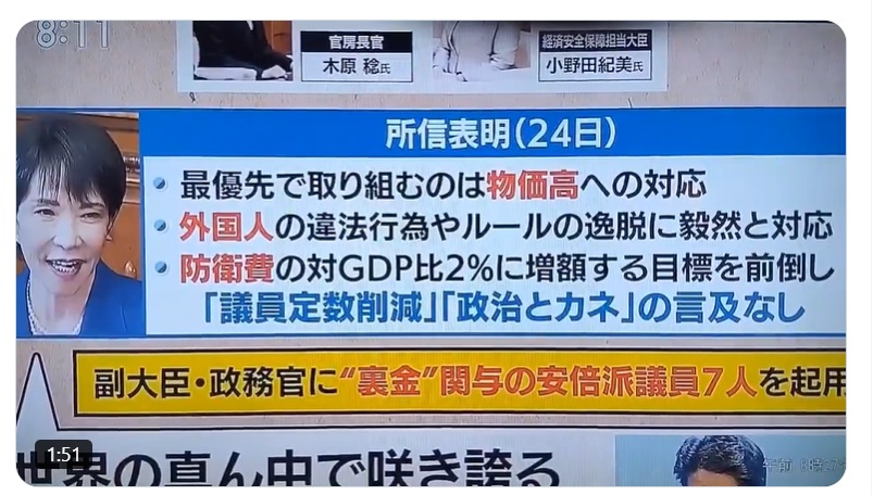 ⇒高市さんの所信表明演説で一度も使わなかった言葉がある。民主主義という言葉。
