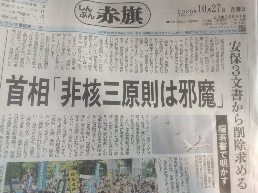 首相、「非核3原則」は「邪魔」だとして、「安保3文書」からの削除を求めていたことを自ら明らかにしていた。強い憤りを感じる。こんな人物に唯一の戦争被爆国の首相を担う資格はない。