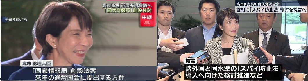 たった数日で国旗損壊罪や国家情報局の創設など特高警察のような話が出てる。