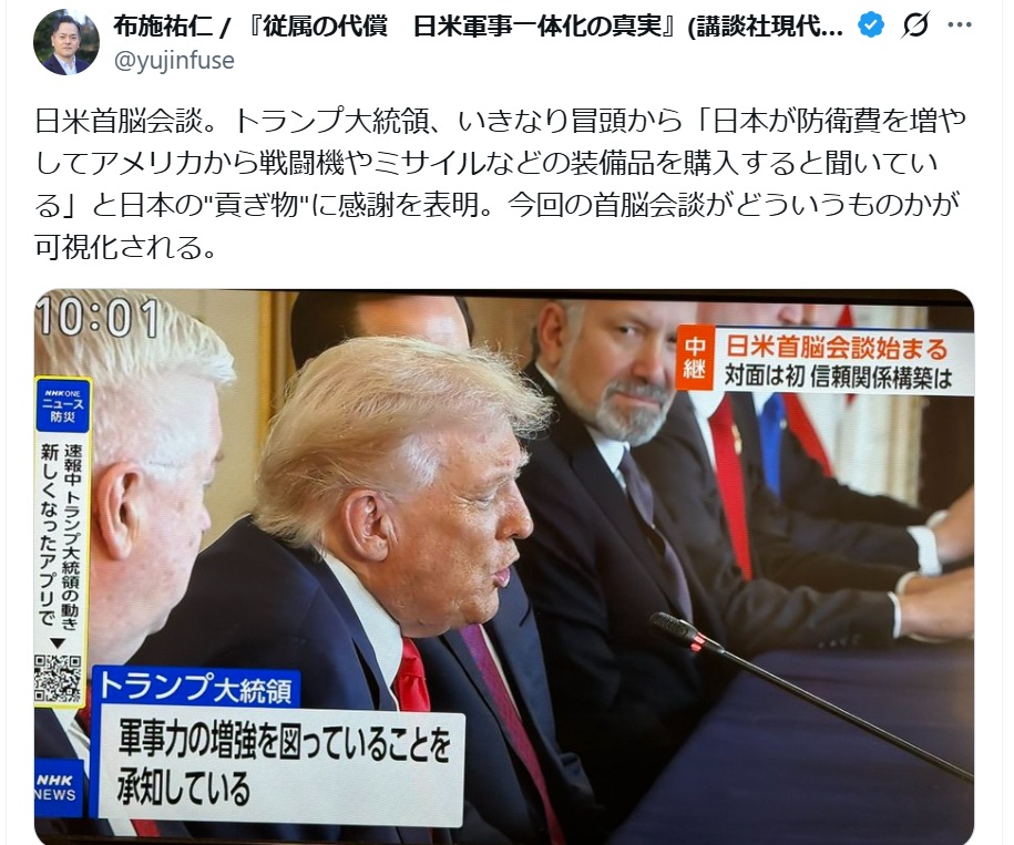高市「(トランプ氏に対し)日本は米国の対中国、インド太平洋戦略にとって非常に重要な国だ」