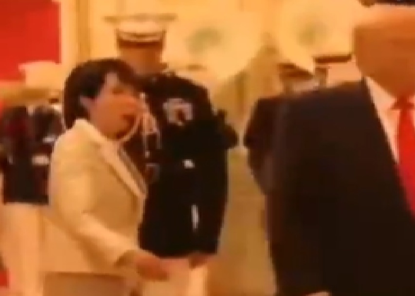 「彼はグレートマンだ」と言って指をさす。ゲルと会談したときは、「彼みたいにハンサムだったらよかったのに」とブブ漬けをかましてる。こんどもそう。