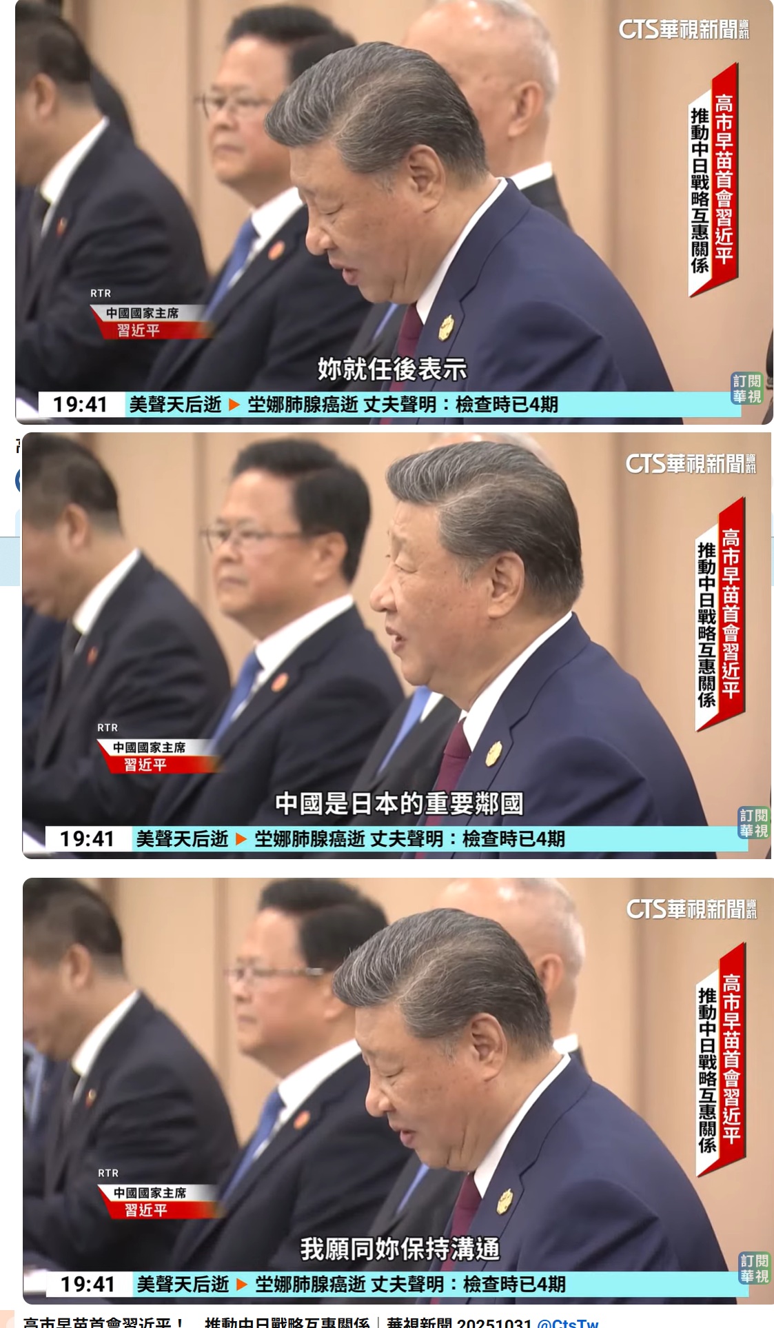 NHKと日本テレビは、「高市早苗氏が就任後、中国は日本の重要な隣国だと表明された」という習主席の発言を大きく取り上げていました。