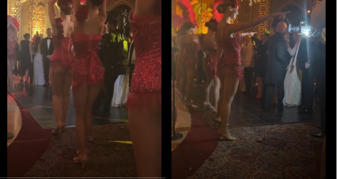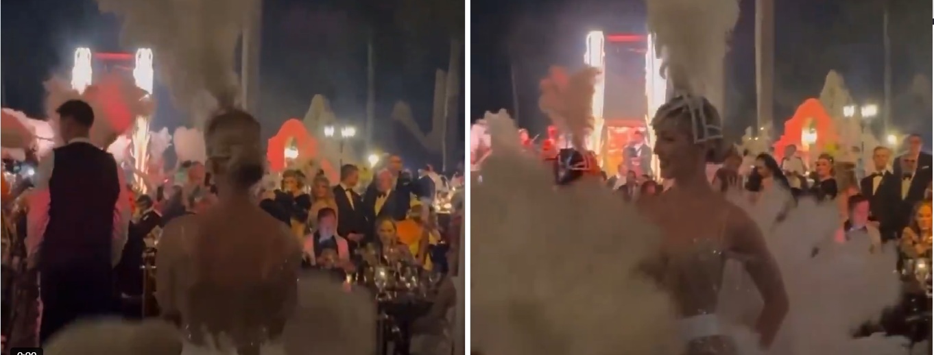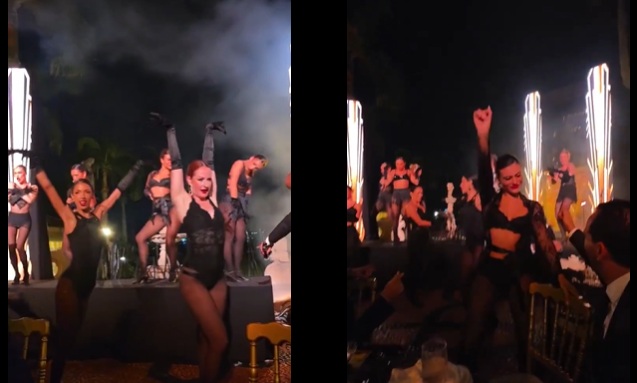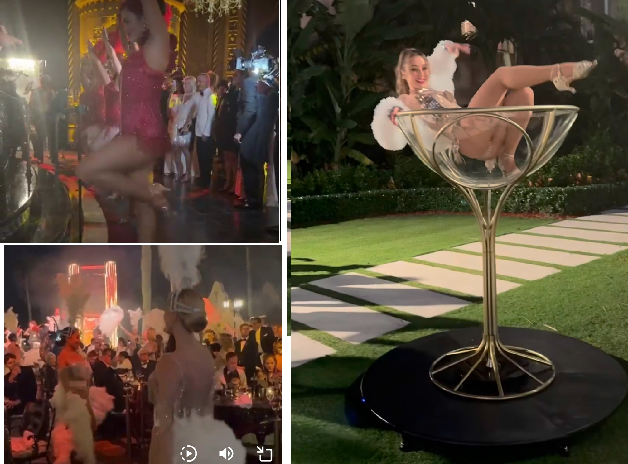 Guests cheer on women dancing for them at Trump’s Mar-a-Lago club.