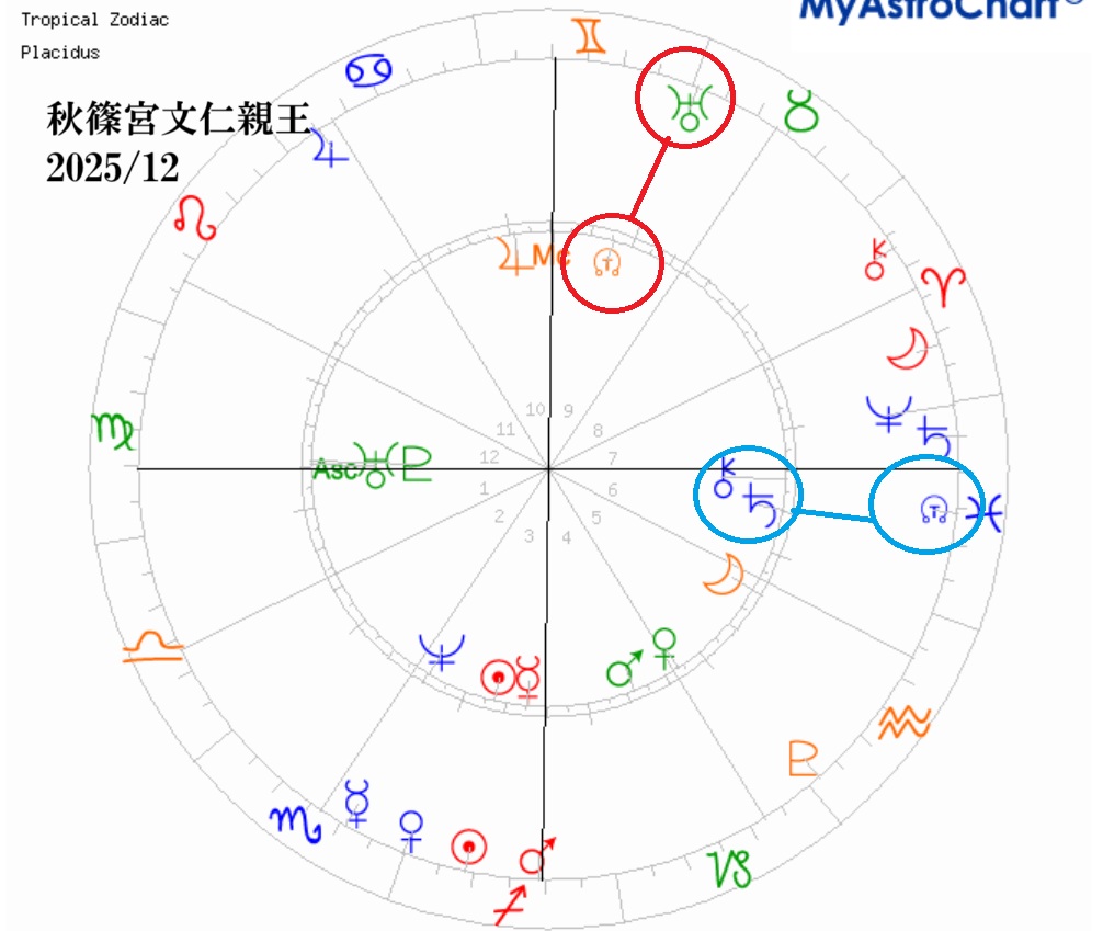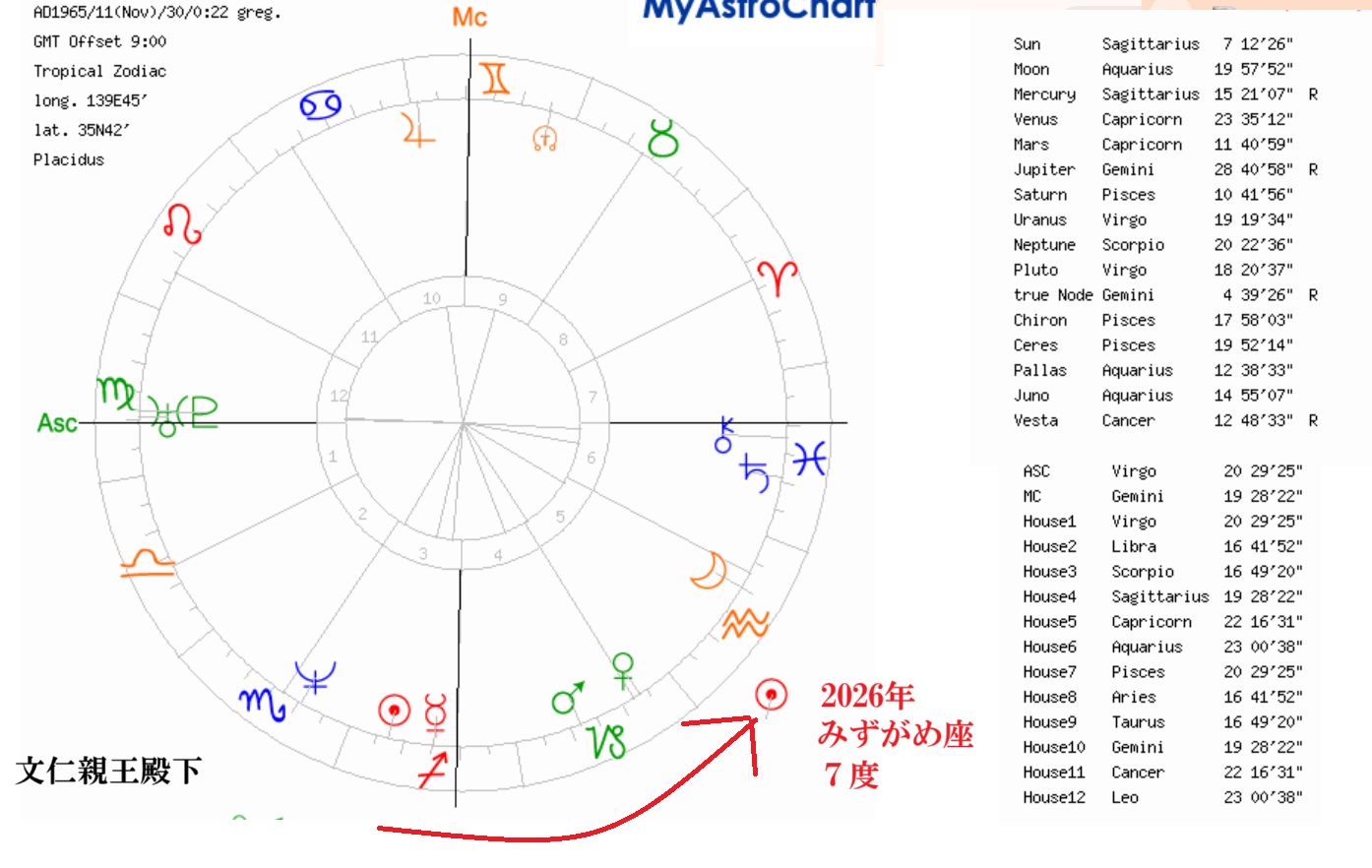秋篠宮様の先天のチャートには、上昇宮とアセンダント(生誕時に東の地平線に登る惑星)に天王星があります。光格天皇以来の皇統の移動を意味する星周りだと思う。
