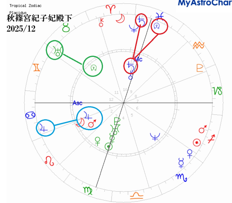 紀子様の先天のチャートが、とにかくものすごいんですよね。どんな凶意をつくっても、緩和させる仕掛けが作られています。すごいんです。