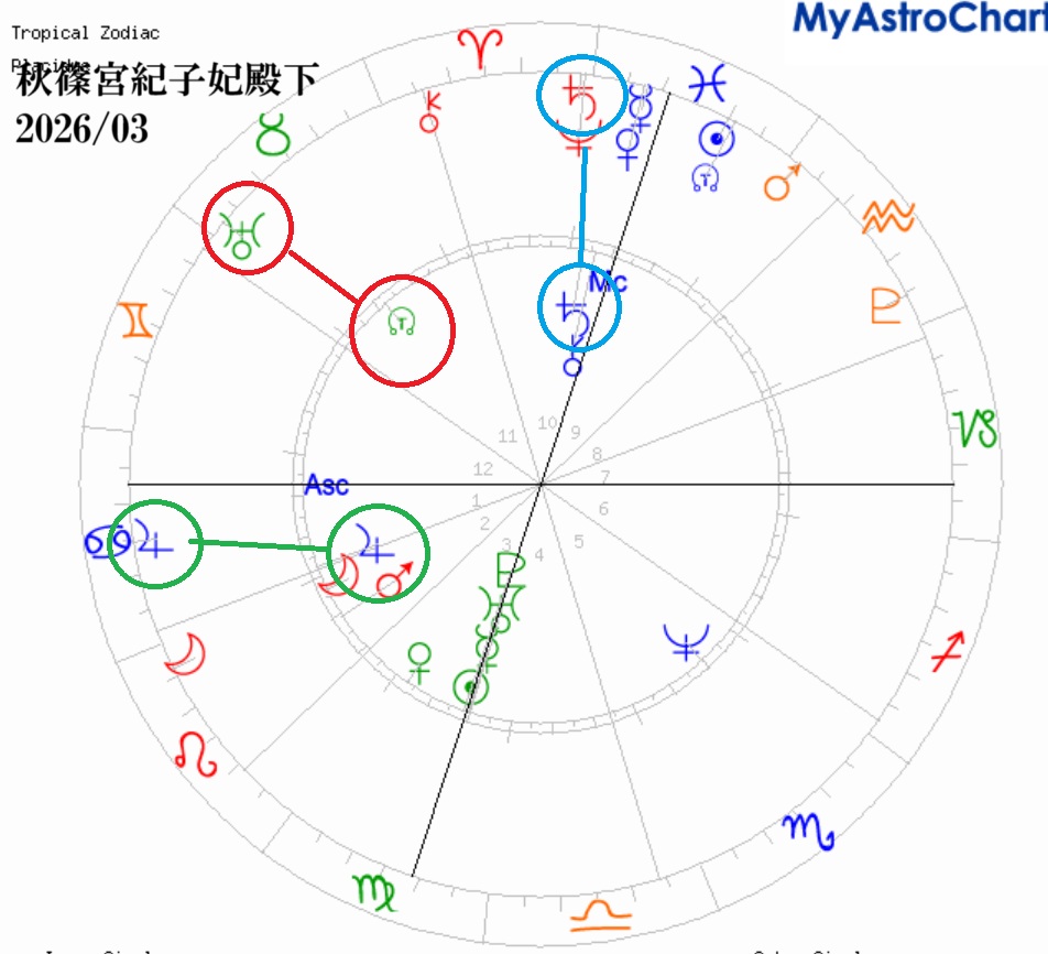 以前にも書きましたが、紀子様の場合、どういう方向や次元から悪象意がでても、絶対に強制的に緩和できる仕掛けがあるチャートです。だから安心なんですが、この時期、やはり、改元の兆候が出てるんですね。