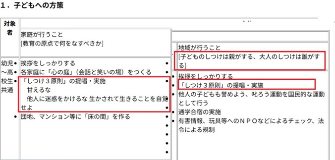 おさらい 官邸HPに長く掲載されていた「子供のへの方策」