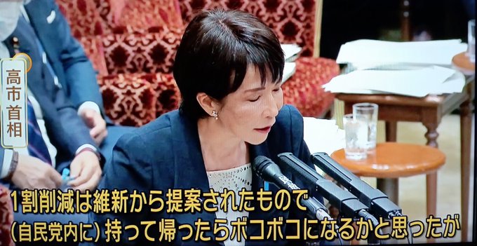 サナエ「1割削減は維新から提案されたもので(自民党内に)持って帰ったらボコボコになるかと思ったが」