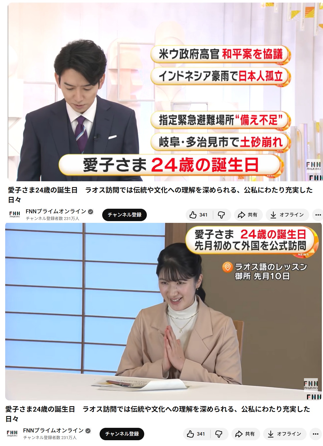 FNN 愛子さま24歳の誕生日 ラオス訪問では伝統や文化への理解を深められる、公私にわたり充実した日々