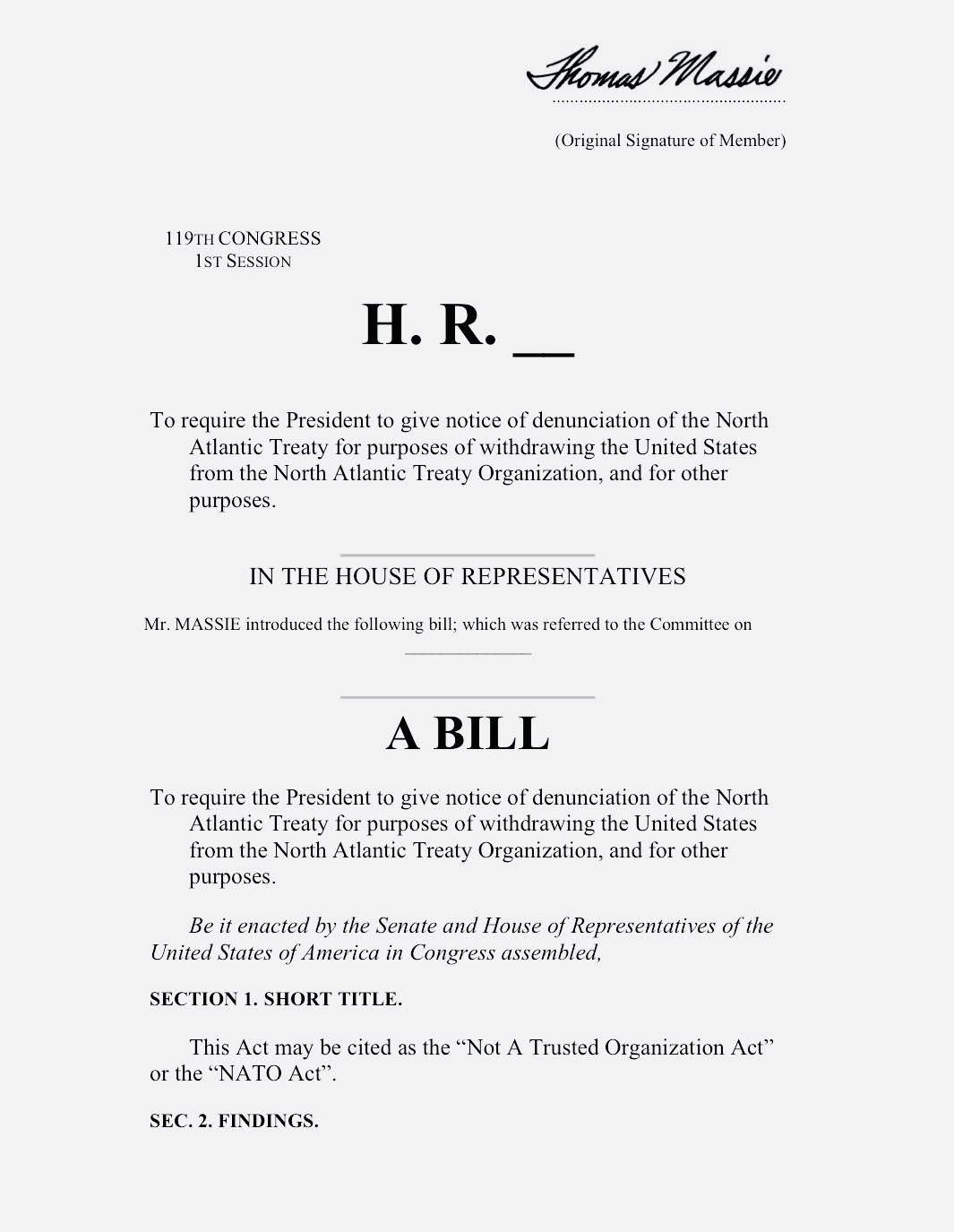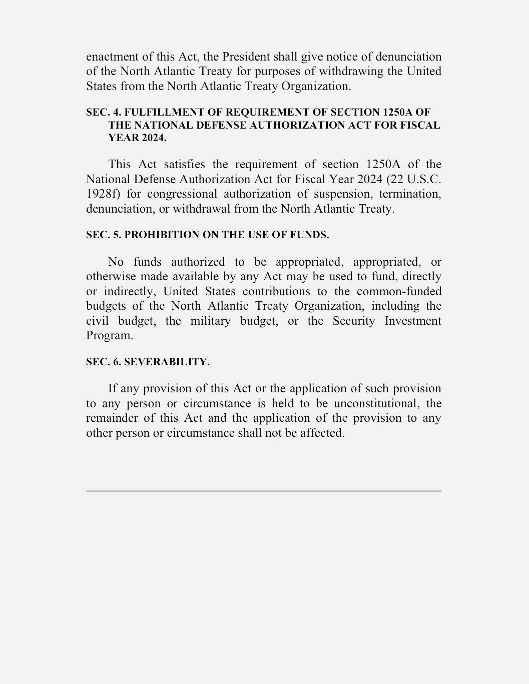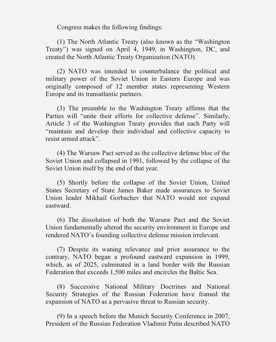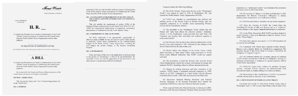 今日、私は我々のNATO加盟を終了するためのHR 6508号法案を提出しました。