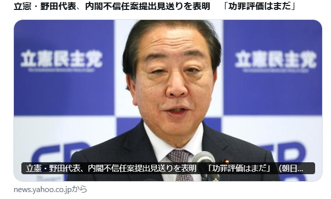 12/12 立憲・野田代表、内閣不信任案提出見送りを表明 「功罪評価はまだ」