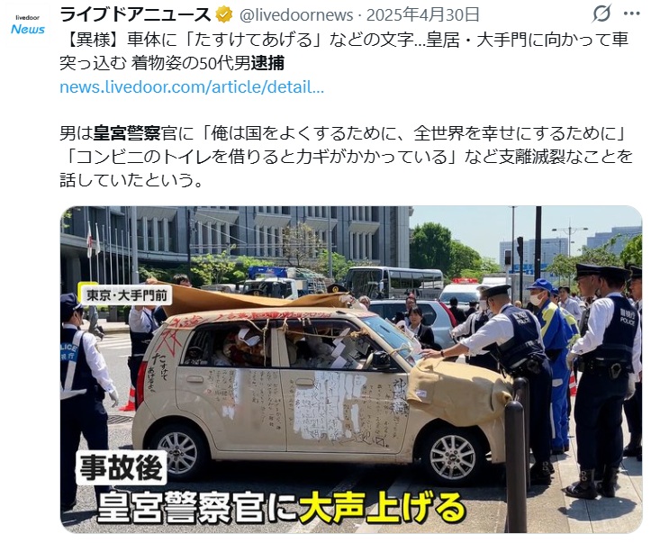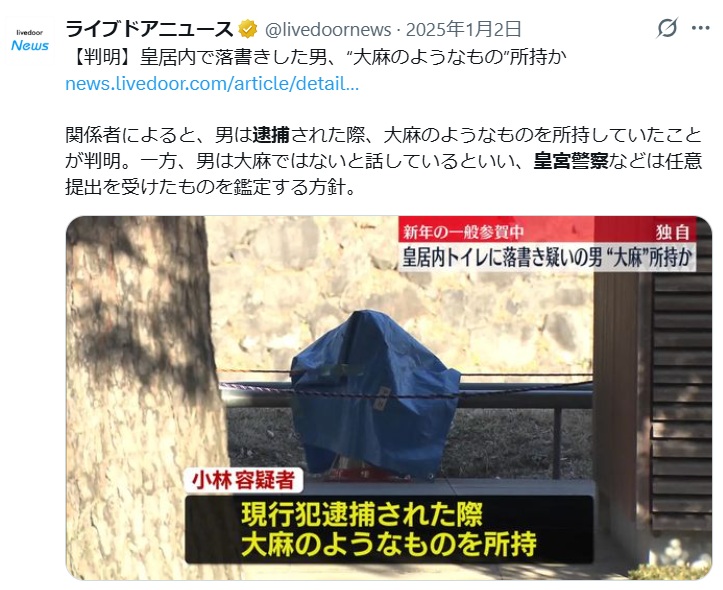 「新年一般参賀」最後の5回目が行われている最中、前の列にいた男が突然奇声を発しながら服を脱ぎ始めたということです。