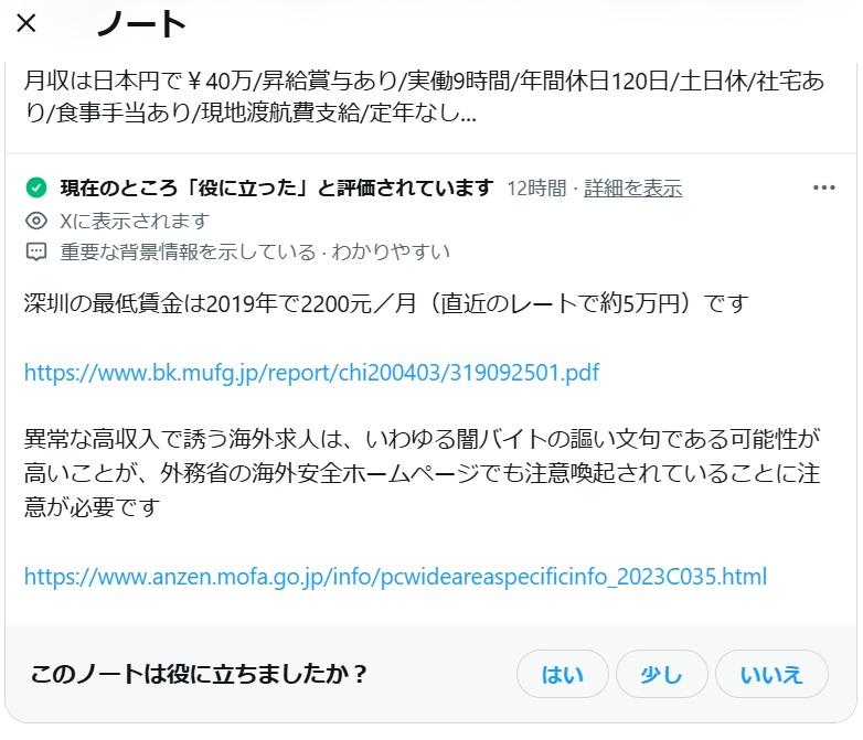 現地の中国人が時給12元とかで働かされてる状況で月収40万を見て怪しいと思わないのは危機感が足りない。