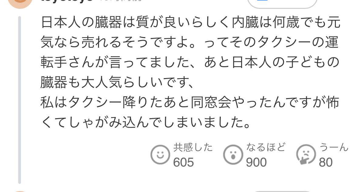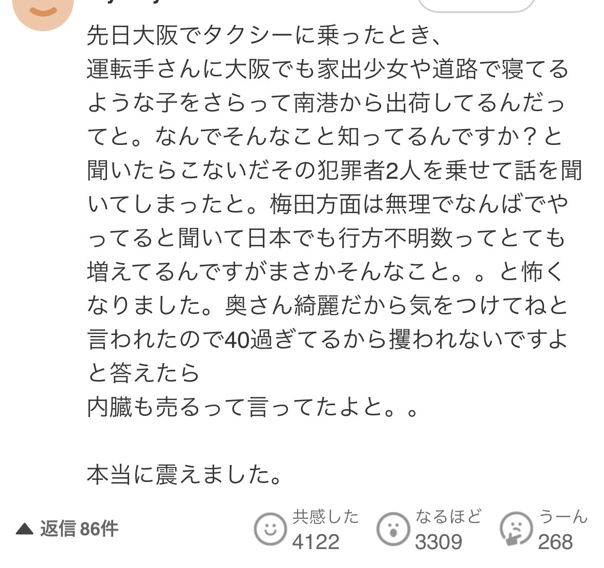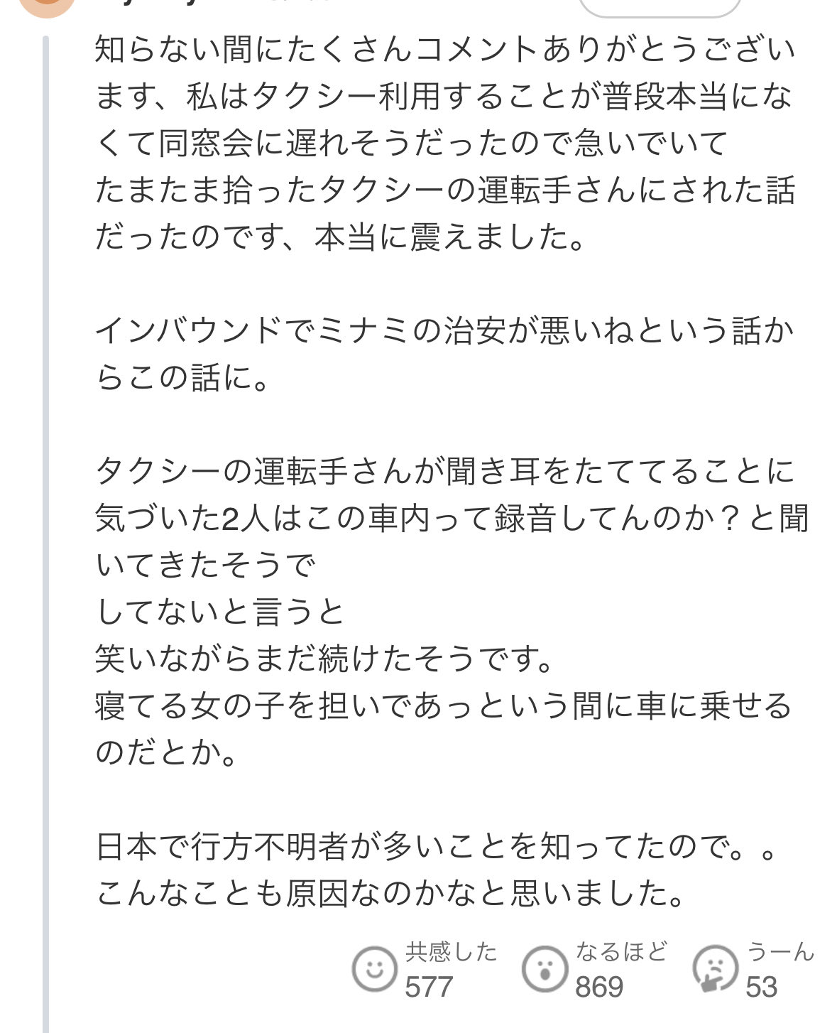 真偽は不明だけど、コメント欄にあった、タクシー運転手さんのお話がリアルすぎた。
