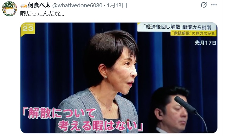 1/23 サナエが国会召集、冒頭解散