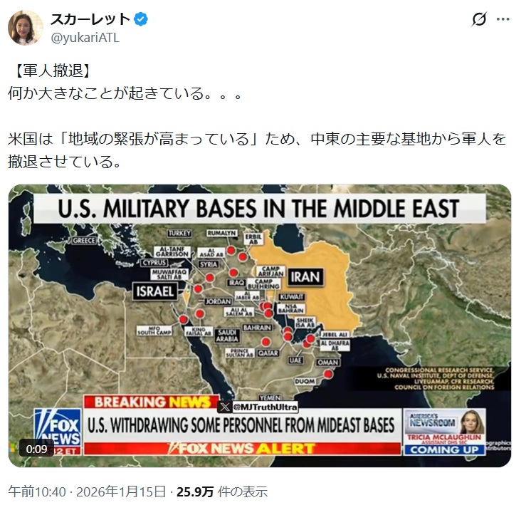 中東の米軍が撤退