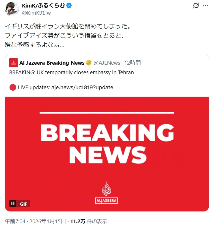 イギリスが駐イラン大使館を閉めてしまった。
