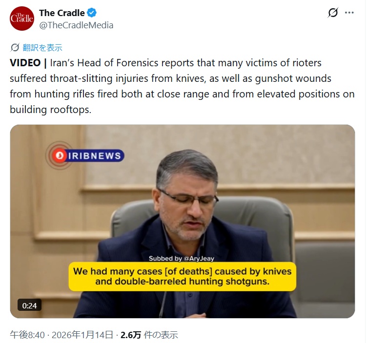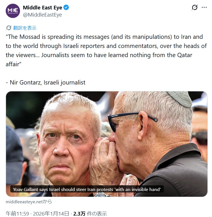 イスラエルがイランの抗議者を武装させているのを半ばゲロってるのほんと草