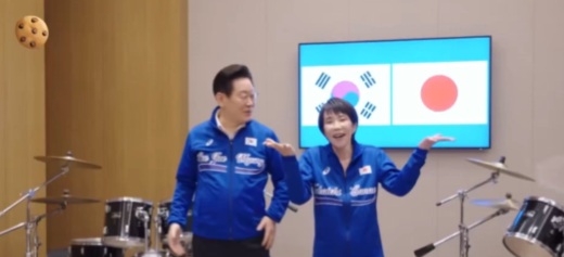 日韓両首脳によるドラムセッションの様子です。