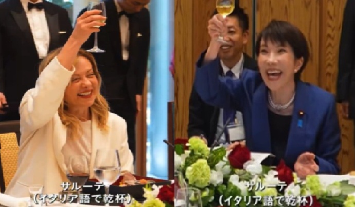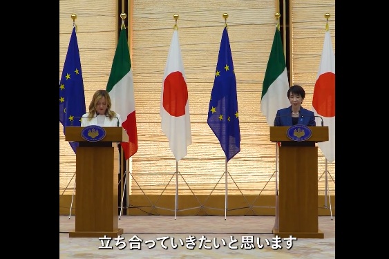 メローニ首相とサナエ。早苗は首相として会うのはこれが最後。G7フランスに参加する日本首相はサナエとは別人、たぶん、暑苦しいおっさんになる