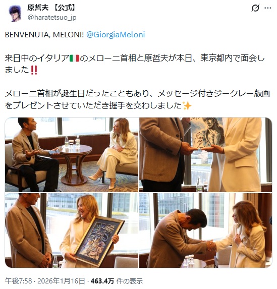 サンデーモーニング、すごいな。韓国 李大統領来日はしっかりやってるのにメローニ首相来日は完全カットしたな。 面白過ぎる。この番組何かのプロパガンダ放送かよ