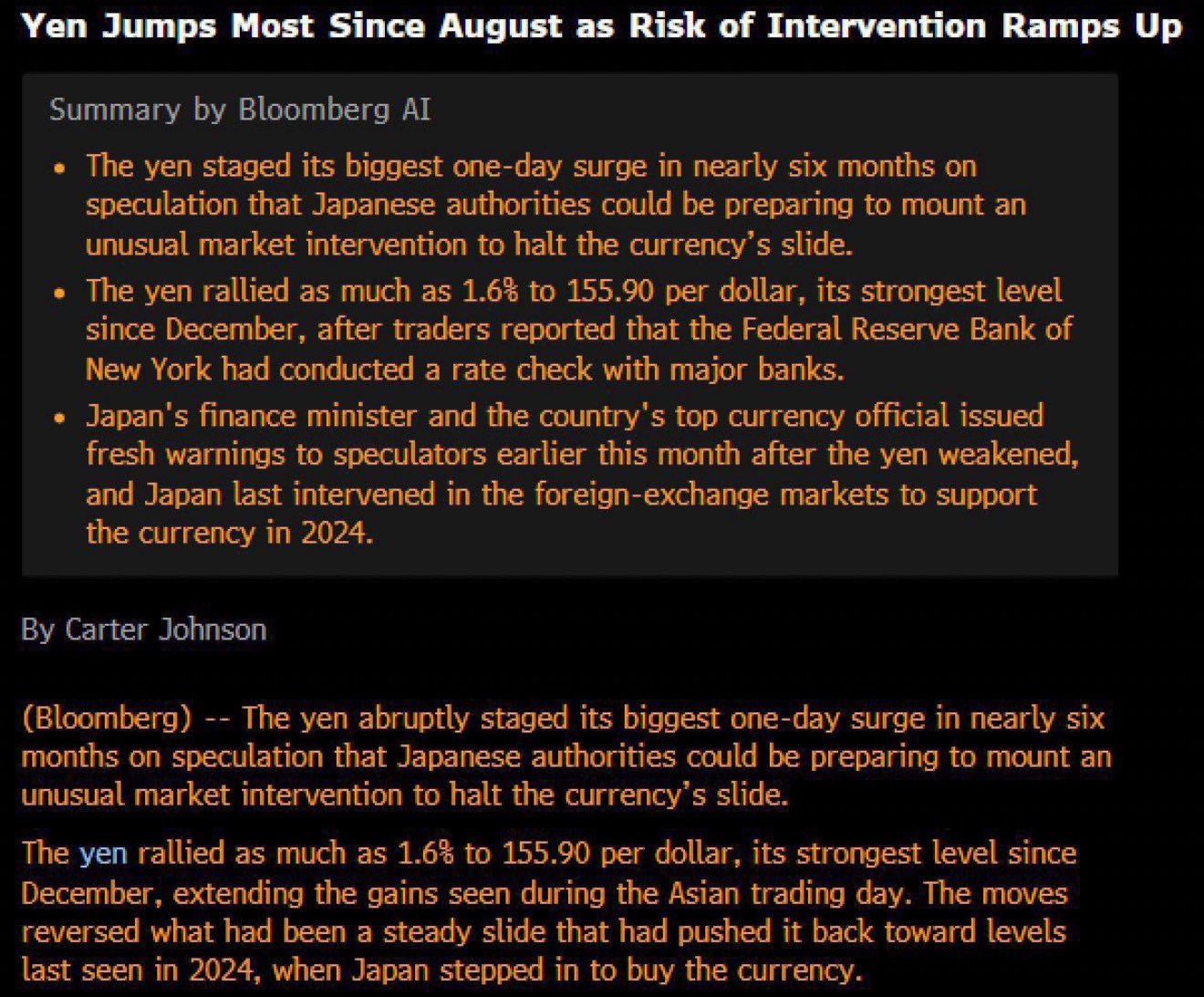 ニューヨーク連銀はすでにレートチェックを実施済みで、これは本物の為替介入の直前に行われるまさにその手順です。つまり米国は、ドルを売って円を買う準備をしているということです。