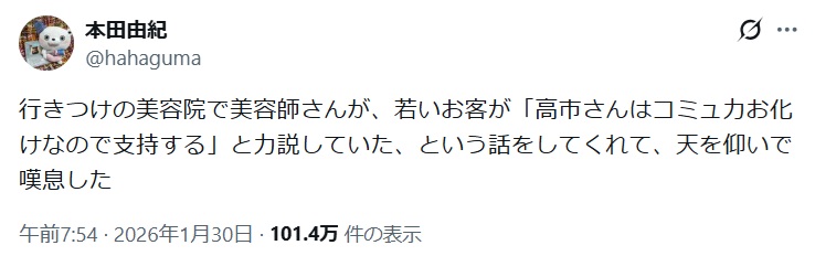 うちだけなんかね?高市が嫌がりそうな投稿を見ようとすると画面が躍るんだけど。アルゴリズムで「高市」に反応するようにしてるんかな。どうなの?