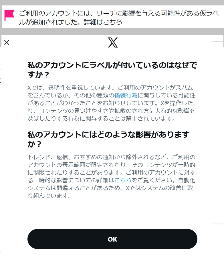 前にも書かせていただきましたが、選挙モードになった後から、管理人のアカウントはラベルが付きました。