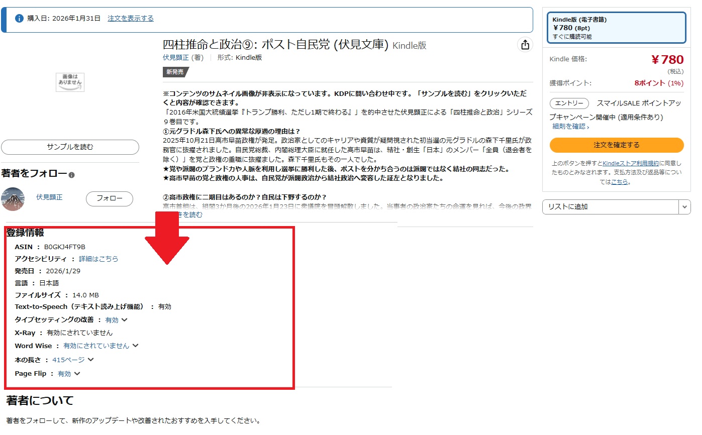 以前、サムネイルは非表示の本もランキング入りしていたのを見たことがあります。しかし、政党ランキングの31位の「高市早苗の研究②」より売れているはずなのですが、ダッシュボードでは登録されてるジャンルに反映していません。