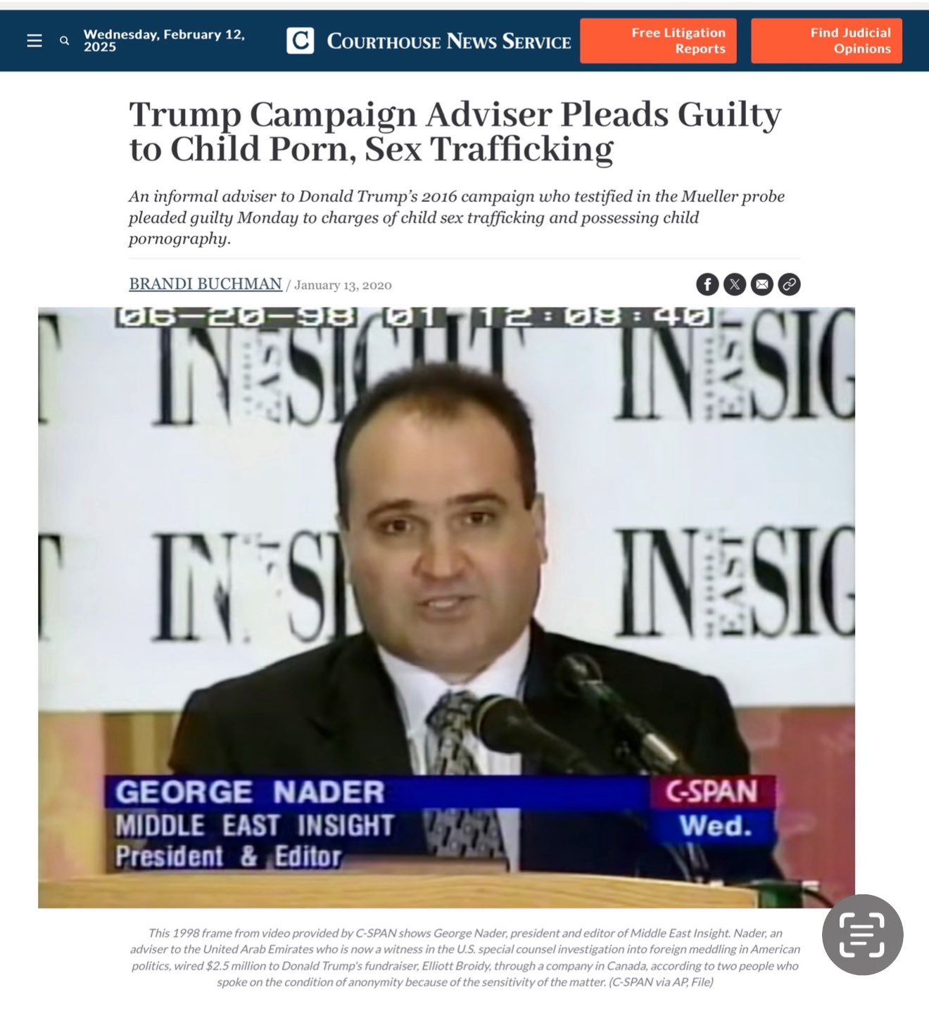 「トランプ陣営顧問、児童ポルノと性的人身売買の罪を認める ドナルド・トランプ氏の2016年選挙キャンペーンの非公式顧問で、モラー特別検察官の捜査で証言した人物が、月曜日、児童性的人身売買と児童ポルノ所持の容疑で有罪を認めた。」