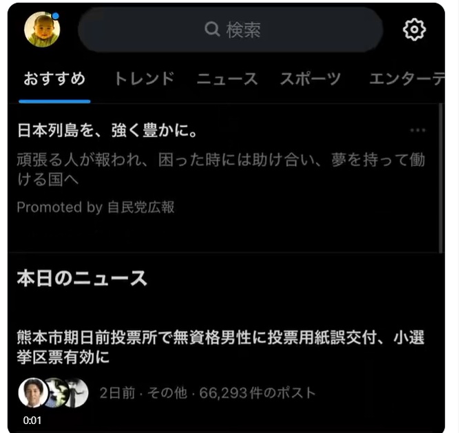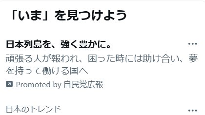 Xの検索のとこから自民党の広告が全然なくならない。興味ないってやってもずーっと出続けてる。なんで?? pic.twitter.com/p7vyJMblkl