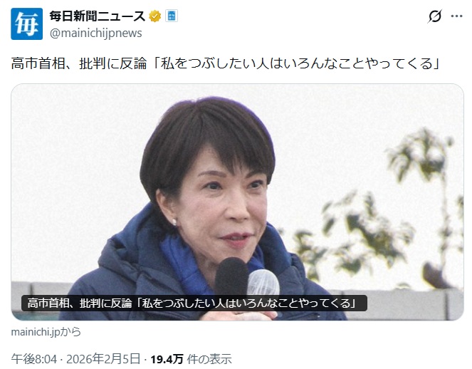 「高市総理の信任選挙」「大統領選」と勘違いが広まる