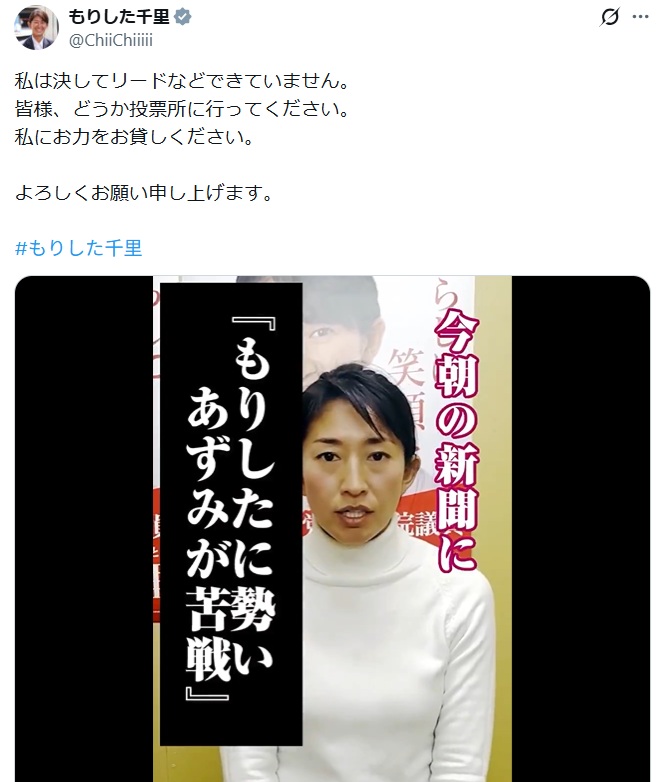 朝日では森下千里が圧倒的リードで安住が危ないと情勢調査で報道されていたがこれが実態じゃないのかな?2020年代の今でも戦争の決着は地上戦で決めるしかない。「高市カルト自民」は空中戦頼み。鹿児島に名古屋出身の元グラドルが落下傘しても「頑張れよ」とは声をかけるけど投票はしないよ🤪