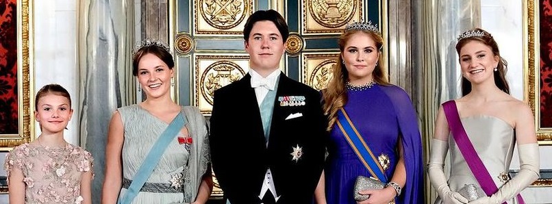 北欧州の王位継承者が集合。ノルウェイ王太子の第一子の王女様は左から2番目のかたですね。お父さんに似てます。